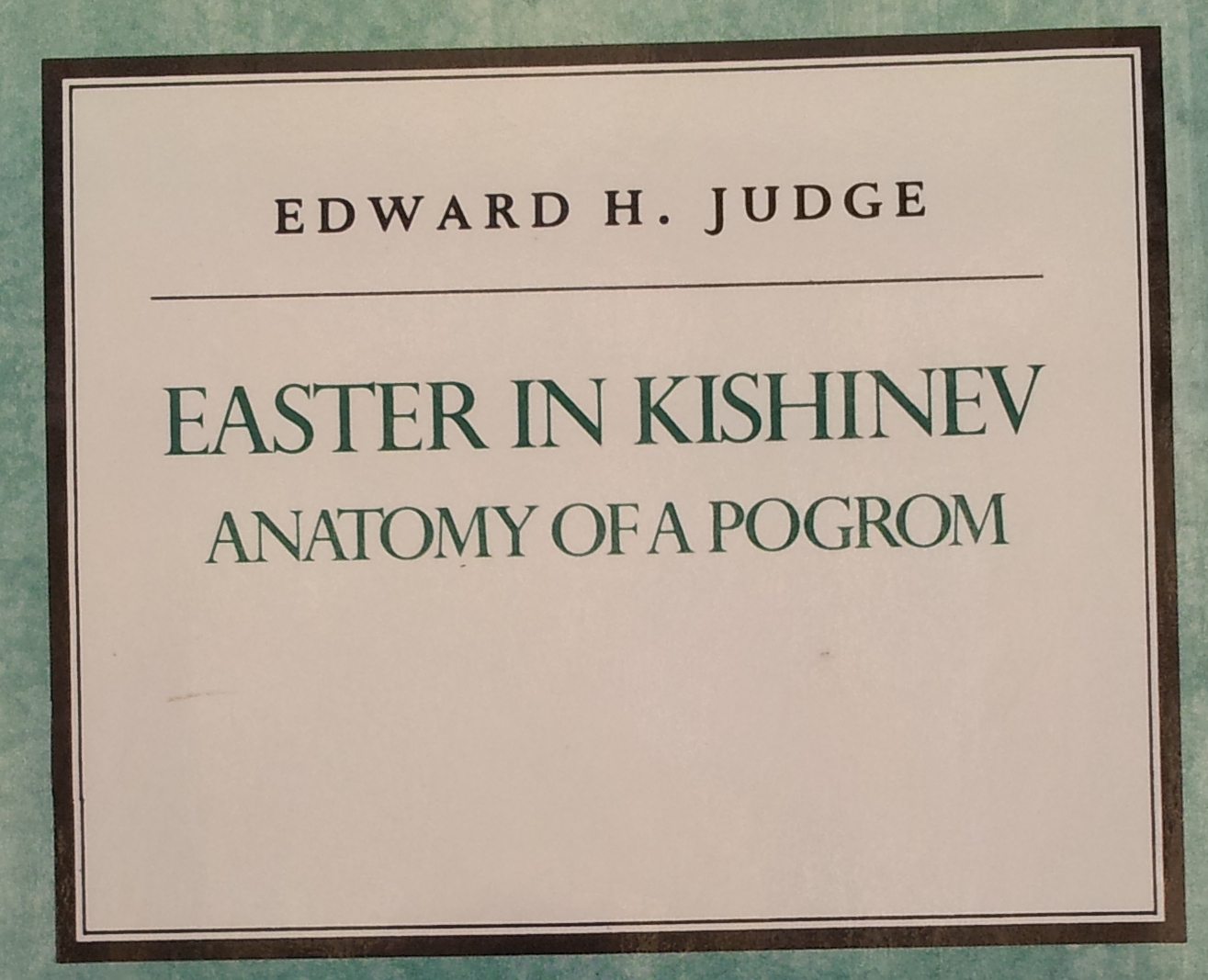 … Anatomy of a Pogrom (Edward H. Judge, NYUP 1992, 0-18147-4193-2)